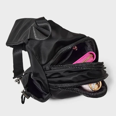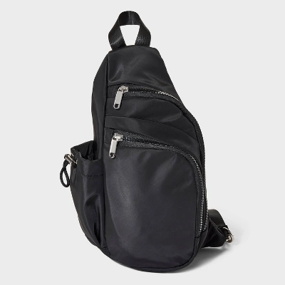 Flap sling bag from Wild Fable™ in a crossbody style. Zipper exterior pocket and side pocket helps stash away smaller items. Lightweight recycled polyester design with adjustable strap and a loop handle for easy carrying.