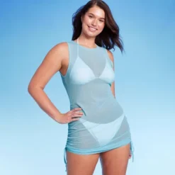 Women’s Mesh Drawstring Ruched Sleeveless Cover Up Dress – Wild Fableā¢