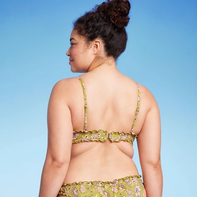Bralette bikini top from Wild Fable™ adorned with ruffle edging. Made of soft, stretchy fabric and comes with removable cups. Adjustable straps and back hook-and-loop fastener help you find a secure fit.