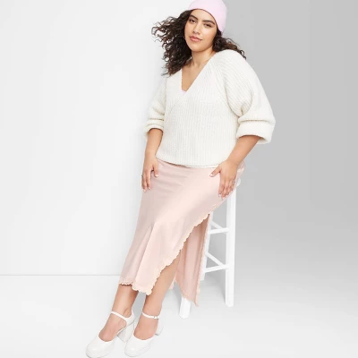 Women’s Satin Lace Trim Midi Skirt – Wild Fable™