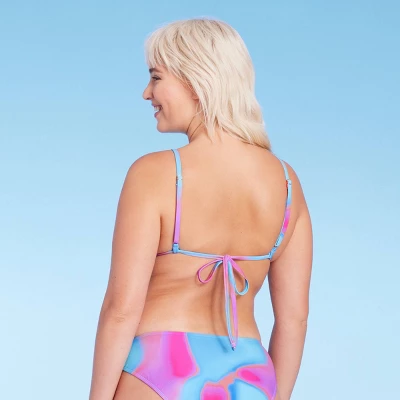 Printed bralette bikini top from Wild Fable™ with full lining. Features blue marble print and a tunnel front. Made with soft and stretchy fabric for flexible comfort. Adjustable straps and back tie provide a customizable fit.