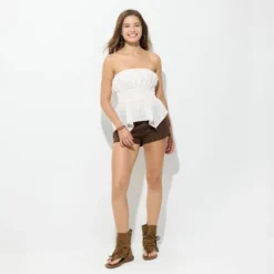 Women’s Bell Long Sleeve Off The Shoulder Ruched Tie-Front Top – Wild Fableā¢