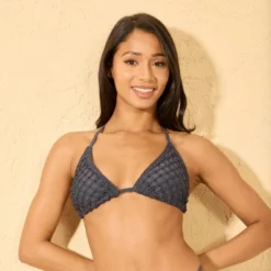 Women’s Beaded Crochet Medium Coverage Triangle Bikini Top – Wild Fable⢠Dark Blue
