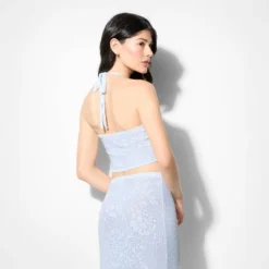 Women’s Ribbed Textured Striped Bralette Bikini Top – Wild Fable⢠Blue/White